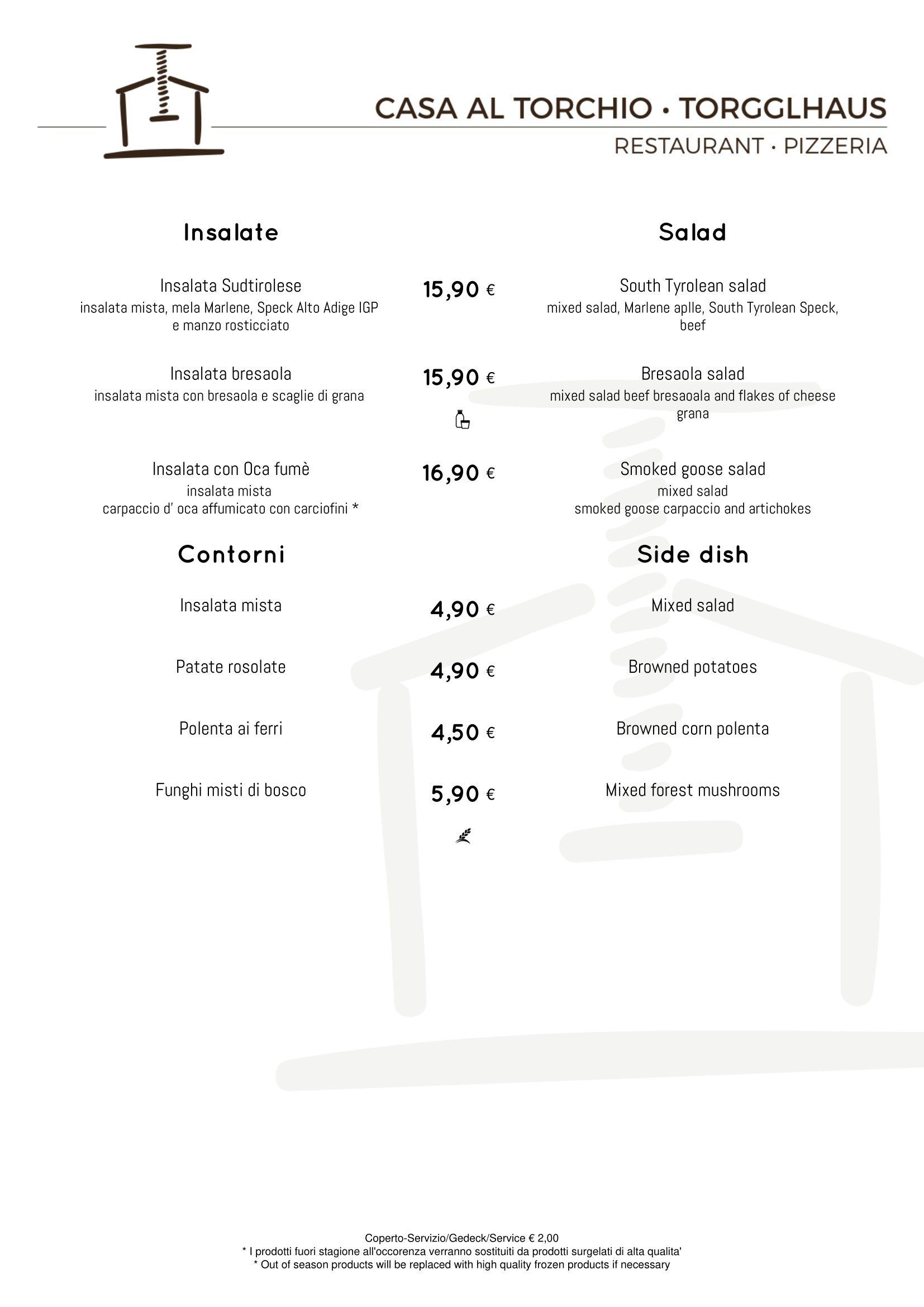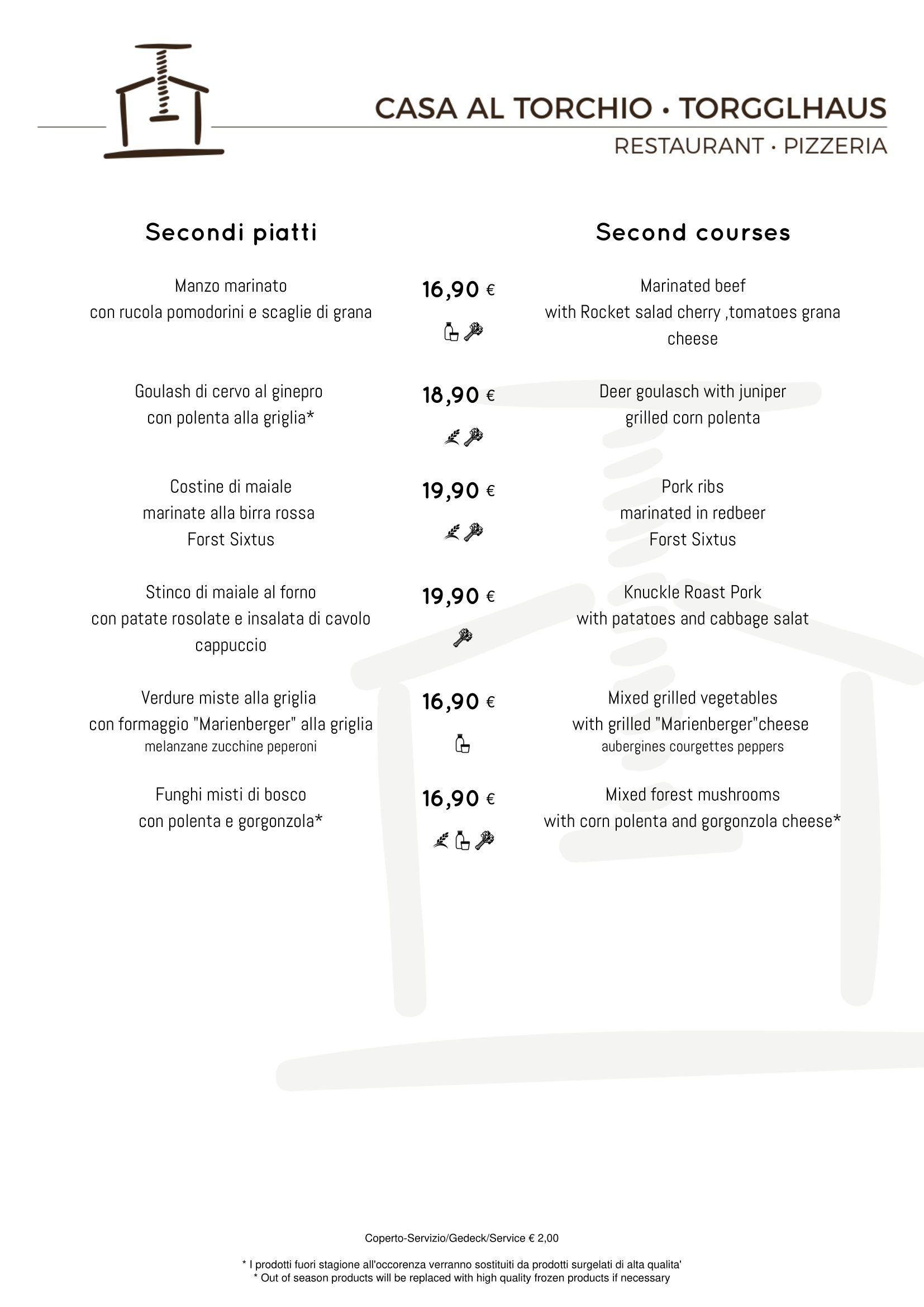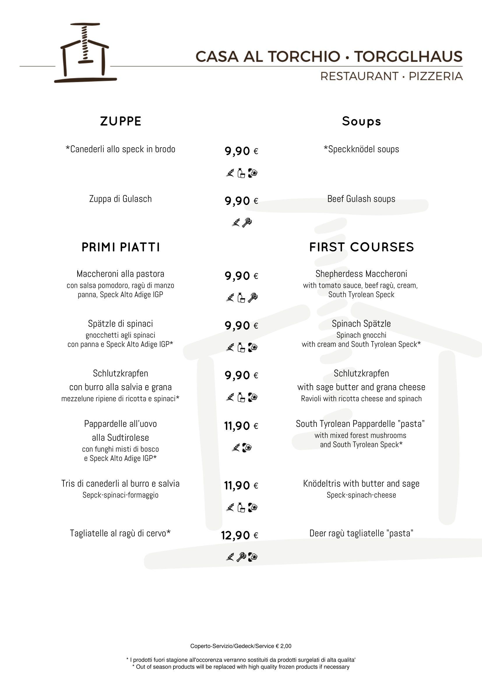 Restaurant Pizzeria Casa al Torchio is where you can enjoy a rich assortment of typical South Tyrolean dishes.
